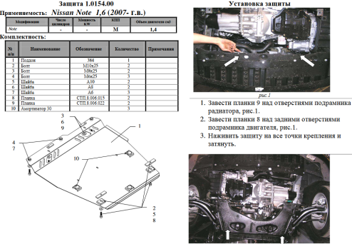Захист двигуна КОЛЬЧУГА для Nissan Note (2012-) 1,2 і 1,5DCI АКПП / МКПП